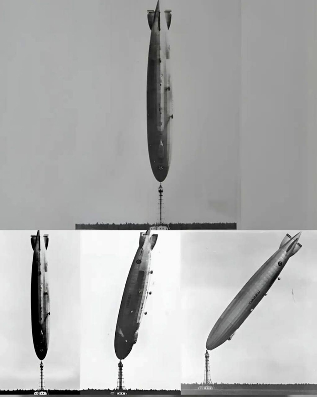 capturaron ese instante sobrecogedor — un dirigible colgando vertical