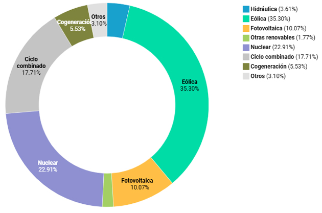 energía nuclear (aprox. 20%) y la solar fotovoltaica (aprox.