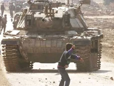 para lanzar piedras contra los tanques israelíes, a pesar de que