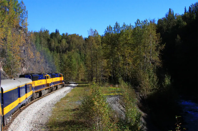 turistas que visitan el Parque Nacional Denali . El tren consta