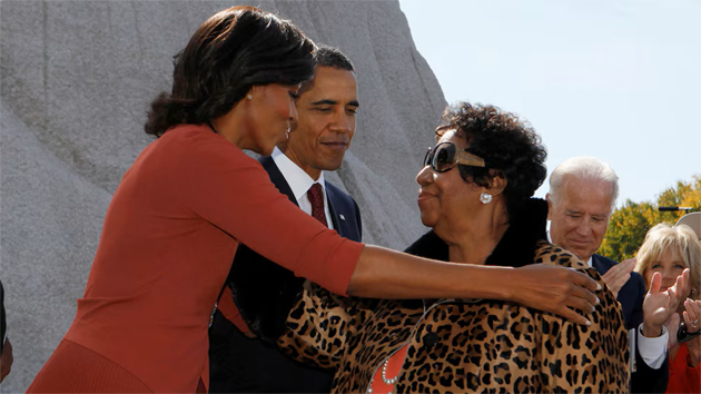 Aretha Franklin junto a Barack y Michelle Obama en un acto